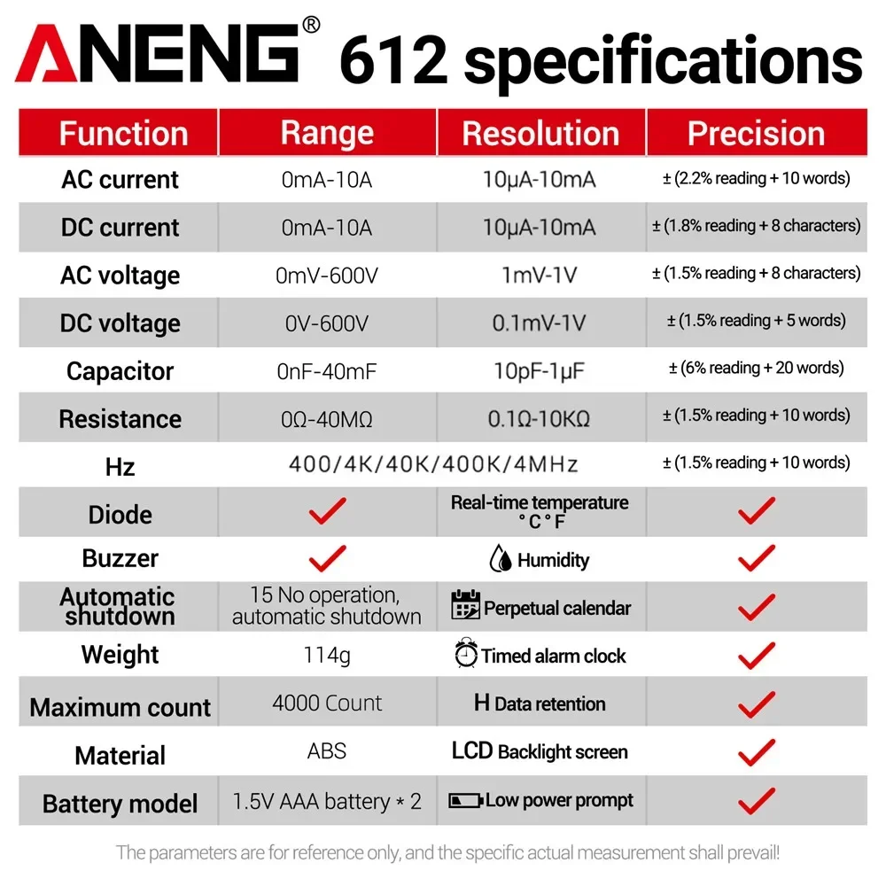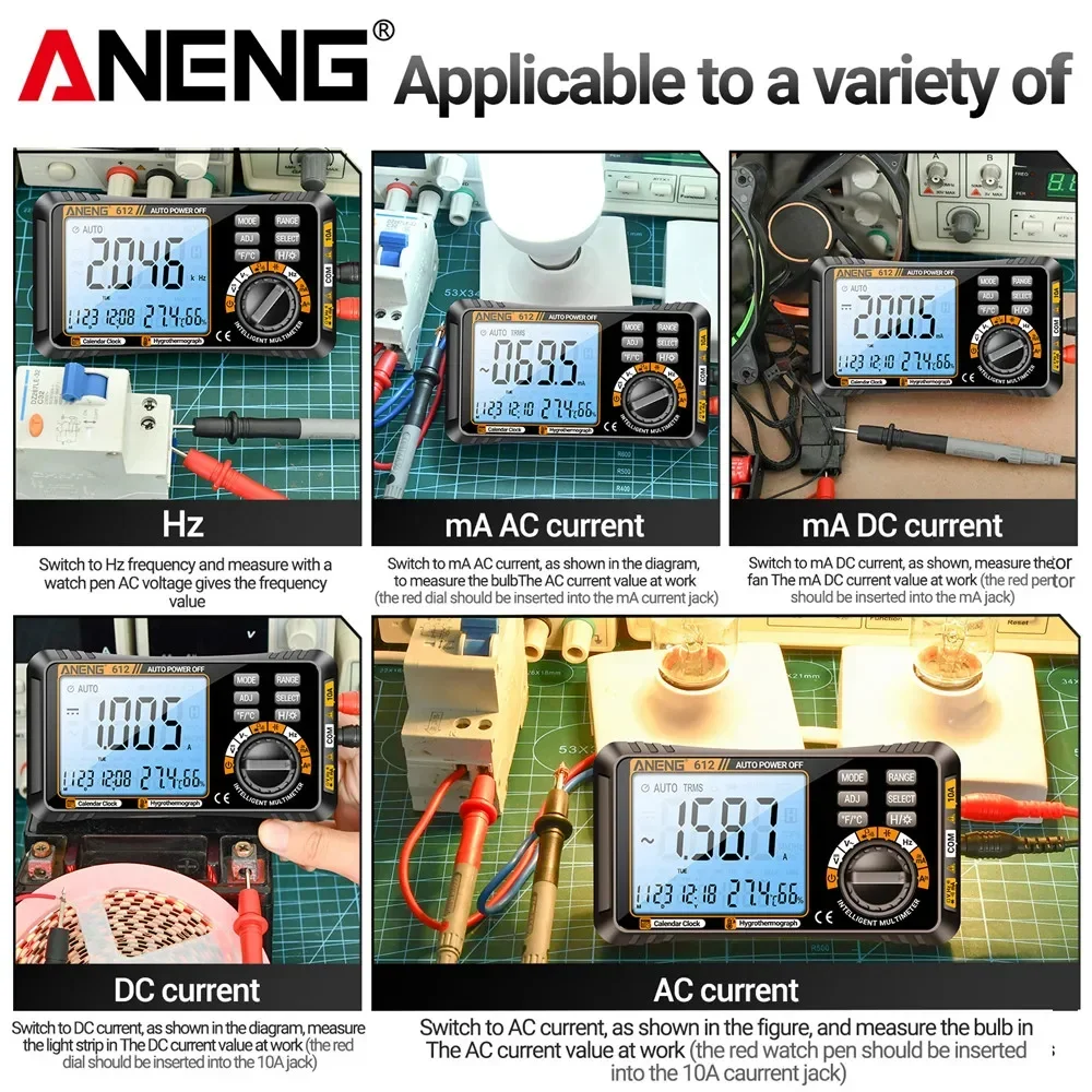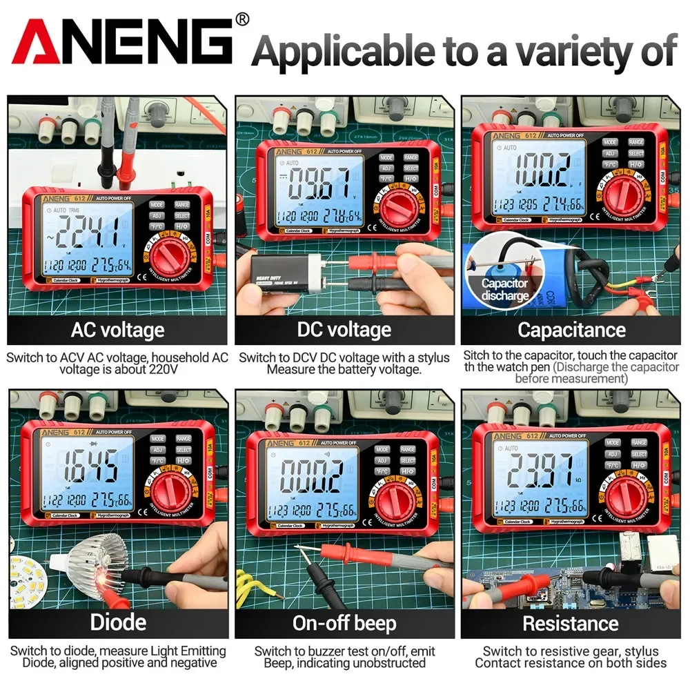 ANENG 612 العدادات الرقمية الذكية التيار المتناوب/تيار مستمر سعة الجهد الحالي أدوات اختبار متعددة المقاييس القياس المهنية